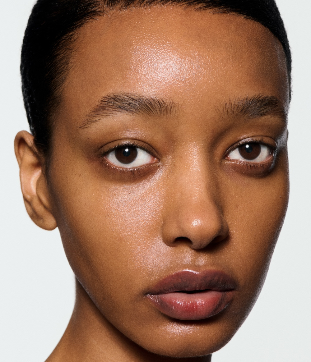 - Træk produktet lidt ned mod halsen, så der ikke kommer en tydelig linje ved ansigtet.